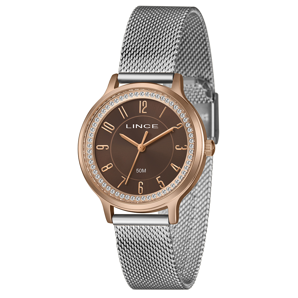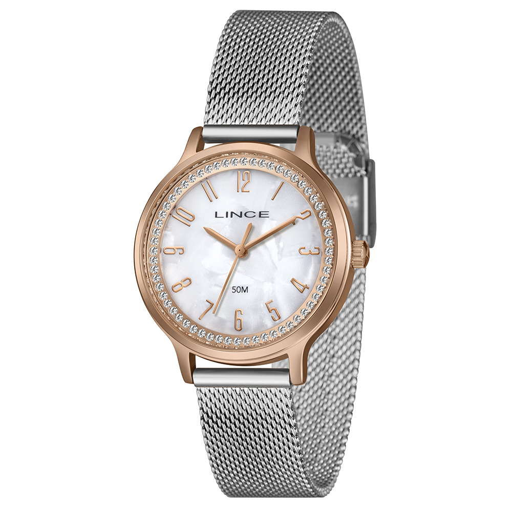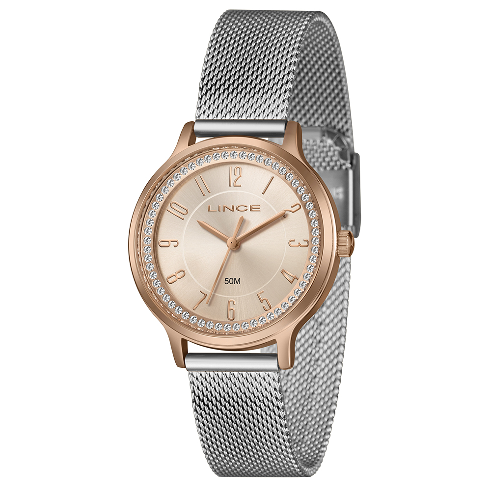 Características: com caixa ROSEGOLD e pulseira tipo mesh em aço