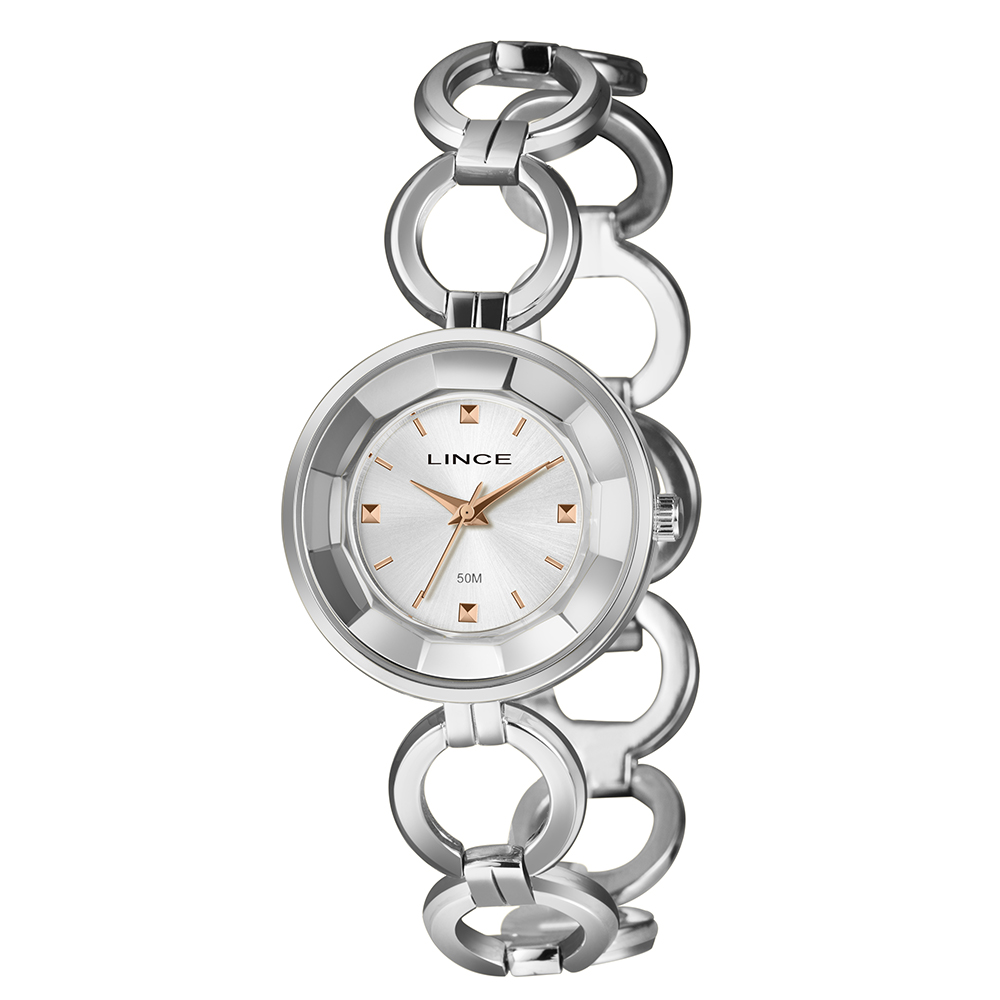 Características: com caixa prata e pulseira prata com elos design argola e fecho joalheria