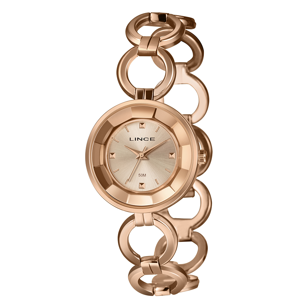 Características: com caixa rosegold e pulseira rosegold com elos design argola e fecho joalheria
