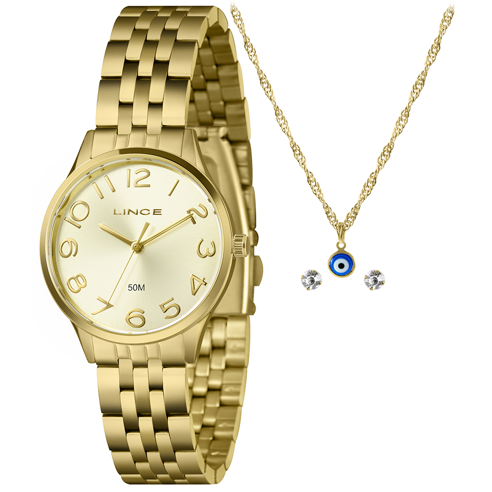 Características: com caixa dourada e pulseira dourada