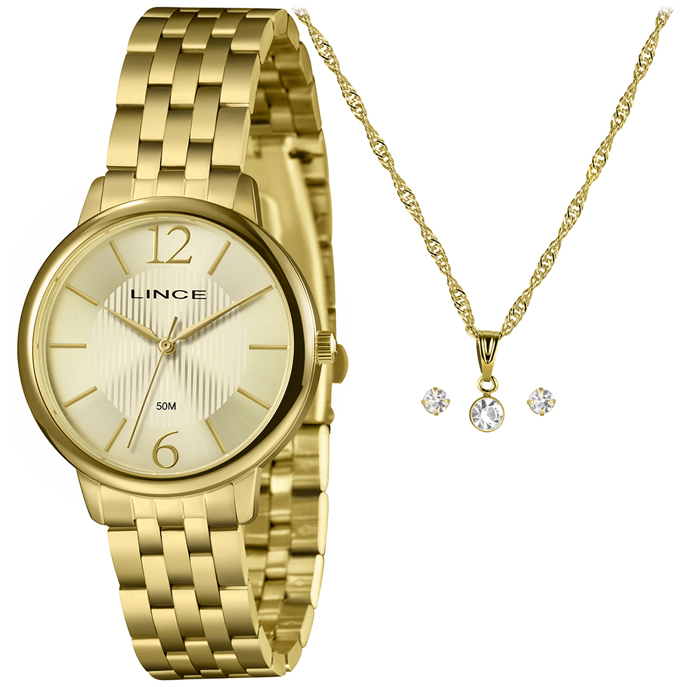 Características: com caixa dourada e pulseira dourada