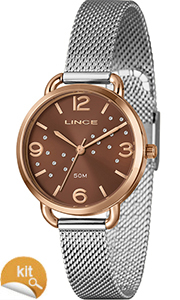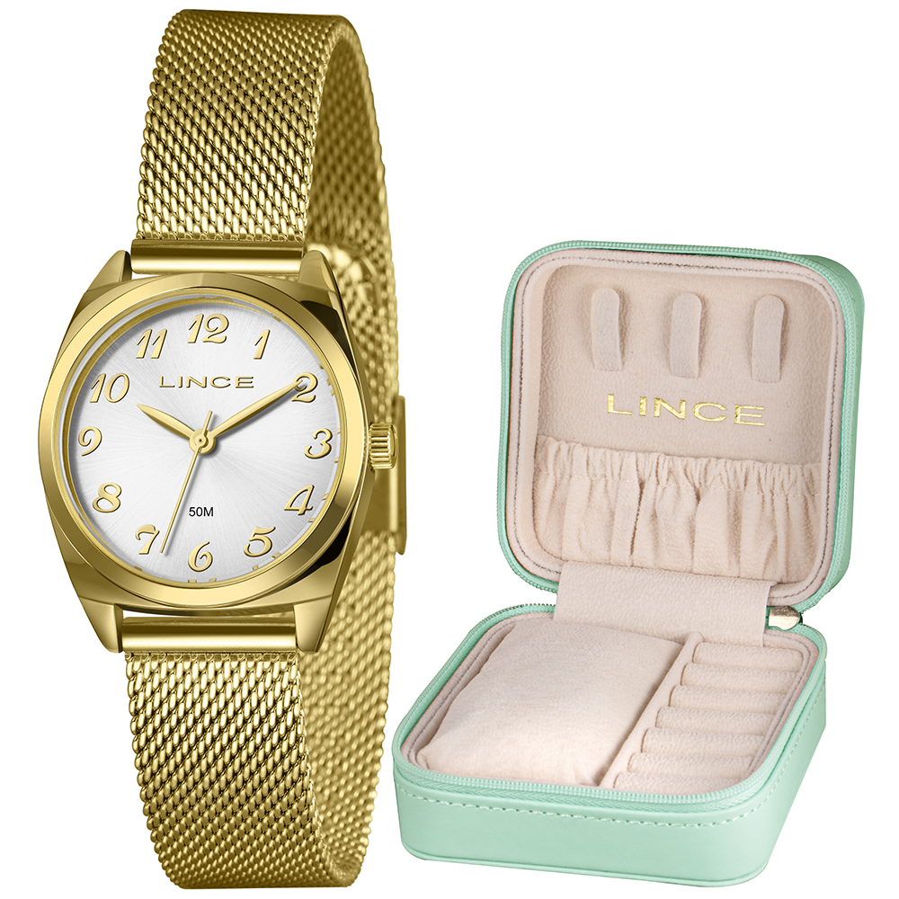 Características: com caixa EM AÇO+IPG e pulseira tipo mesh em aço+ipg