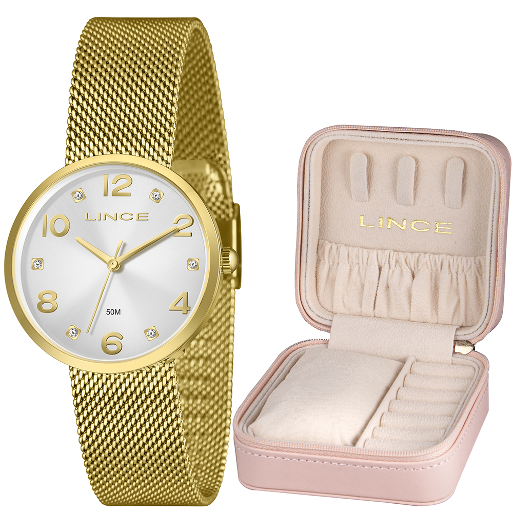 Características: com caixa EM AÇO+IPG e pulseira tipo mesh em aço+ipg