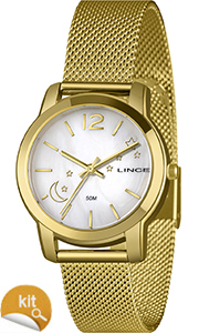 Características: com caixa DOURADO e pulseira tipo mesh em aço+ipg