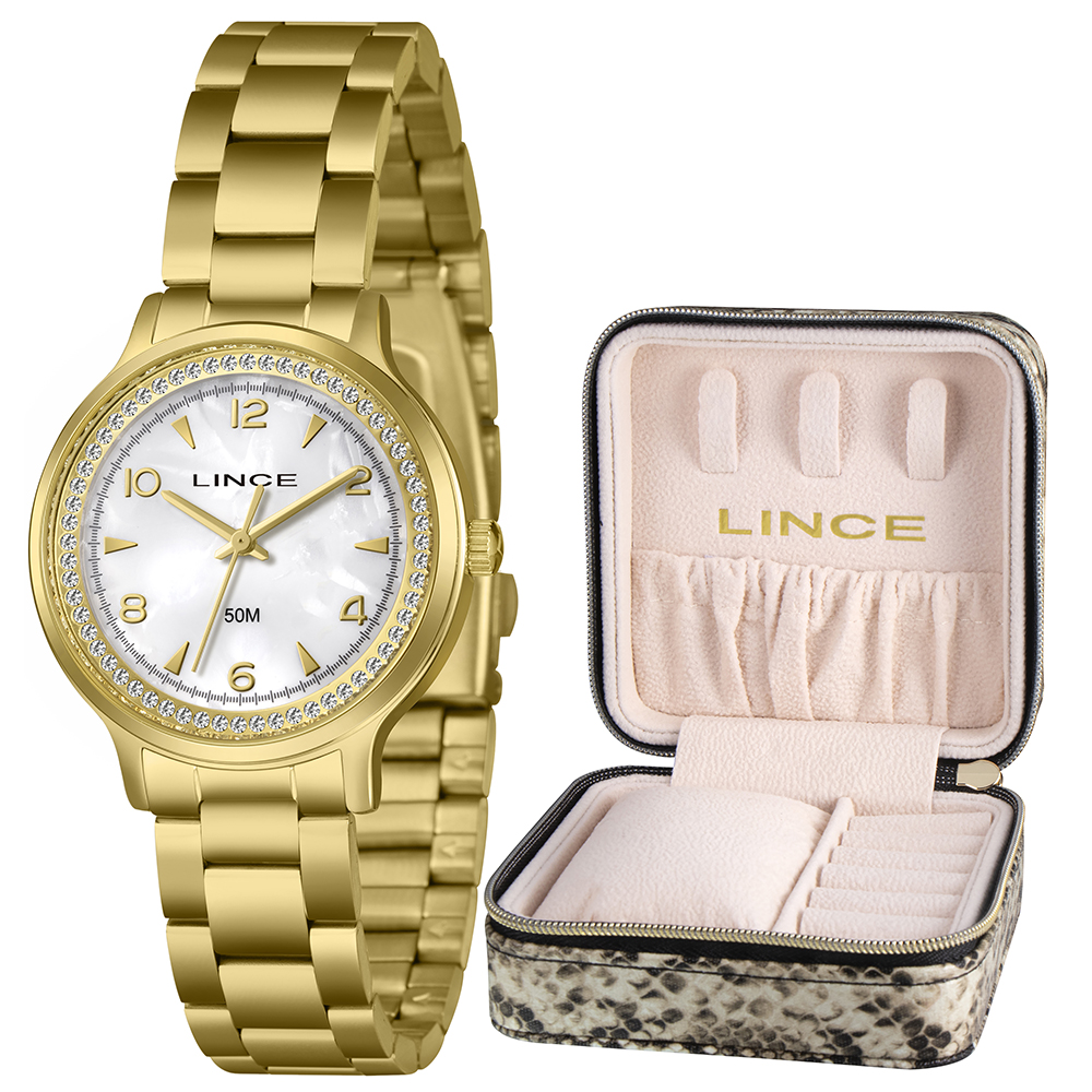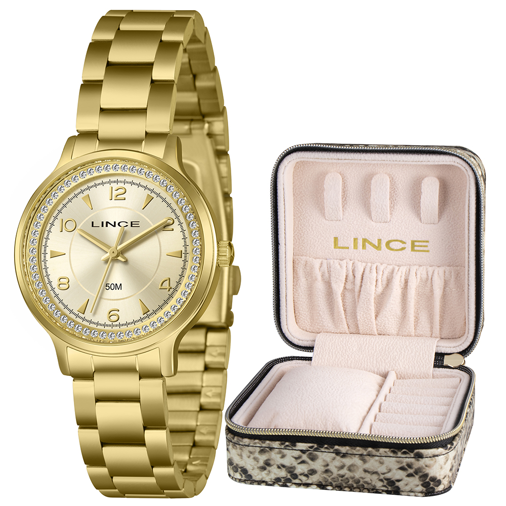 Características: com caixa dourada e pulseira dourada