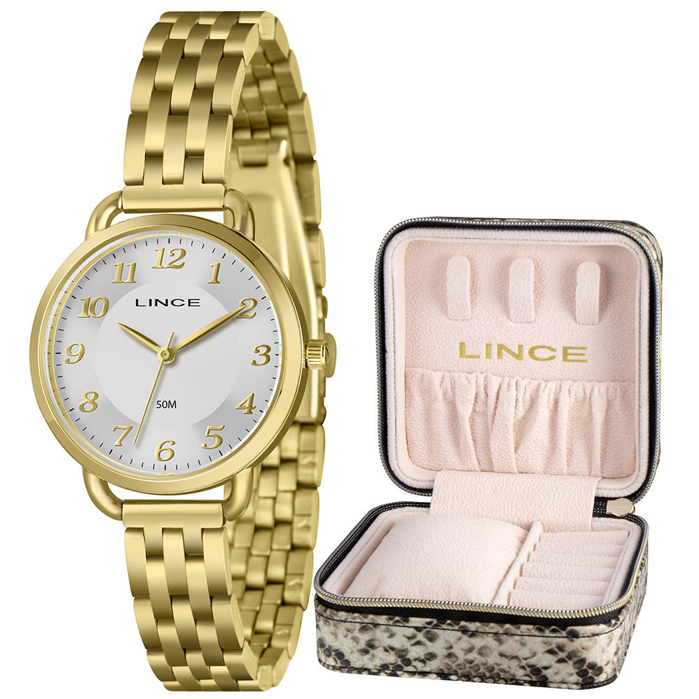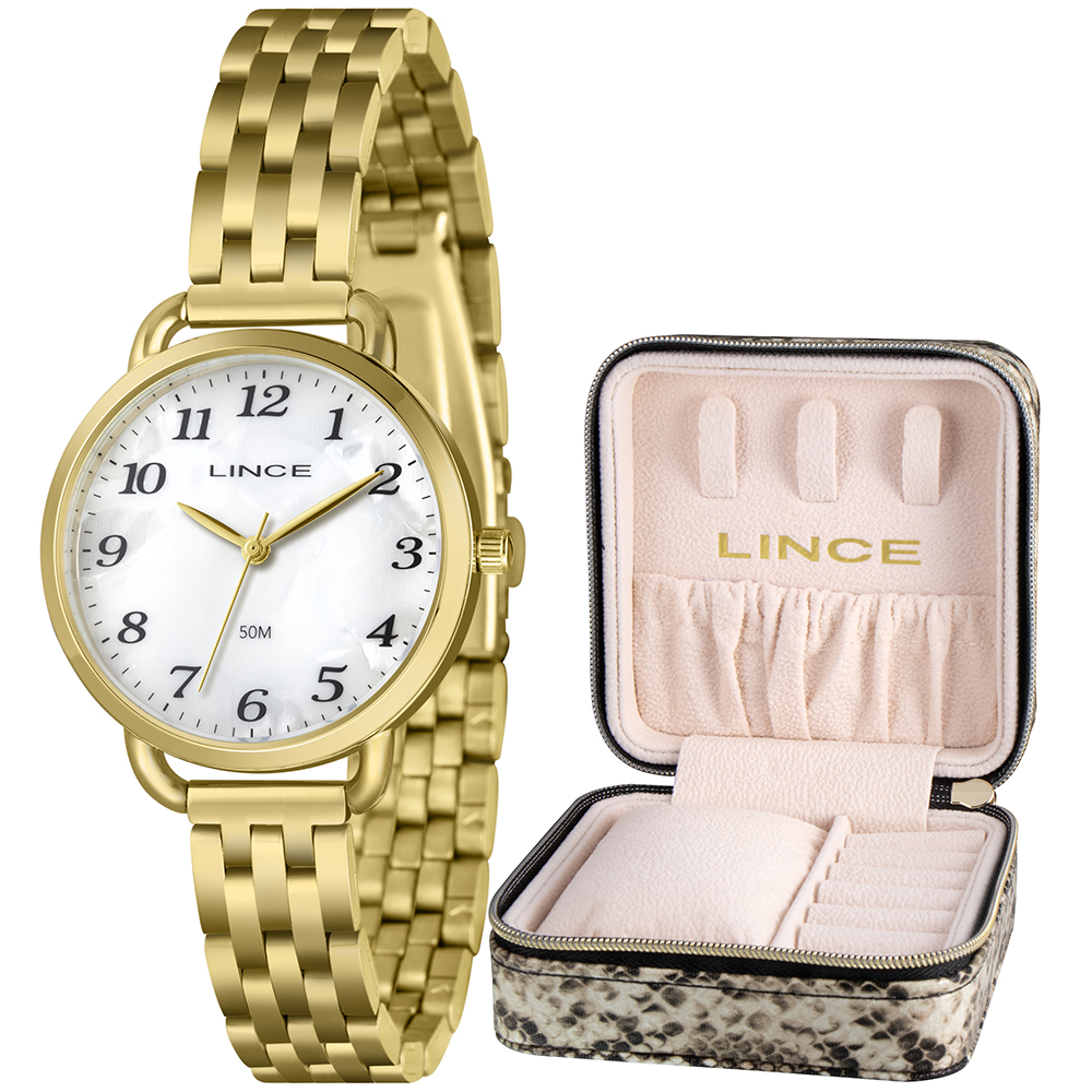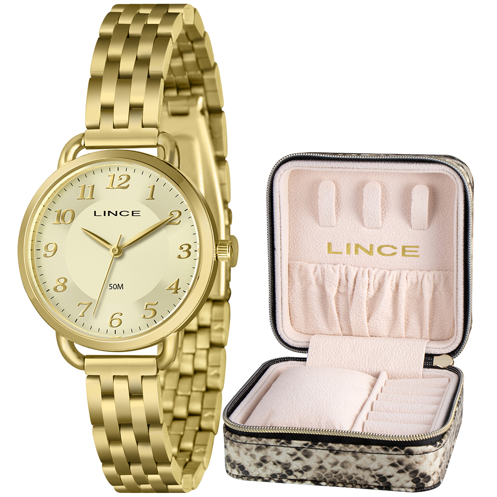 Características: com caixa dourada e pulseira dourada