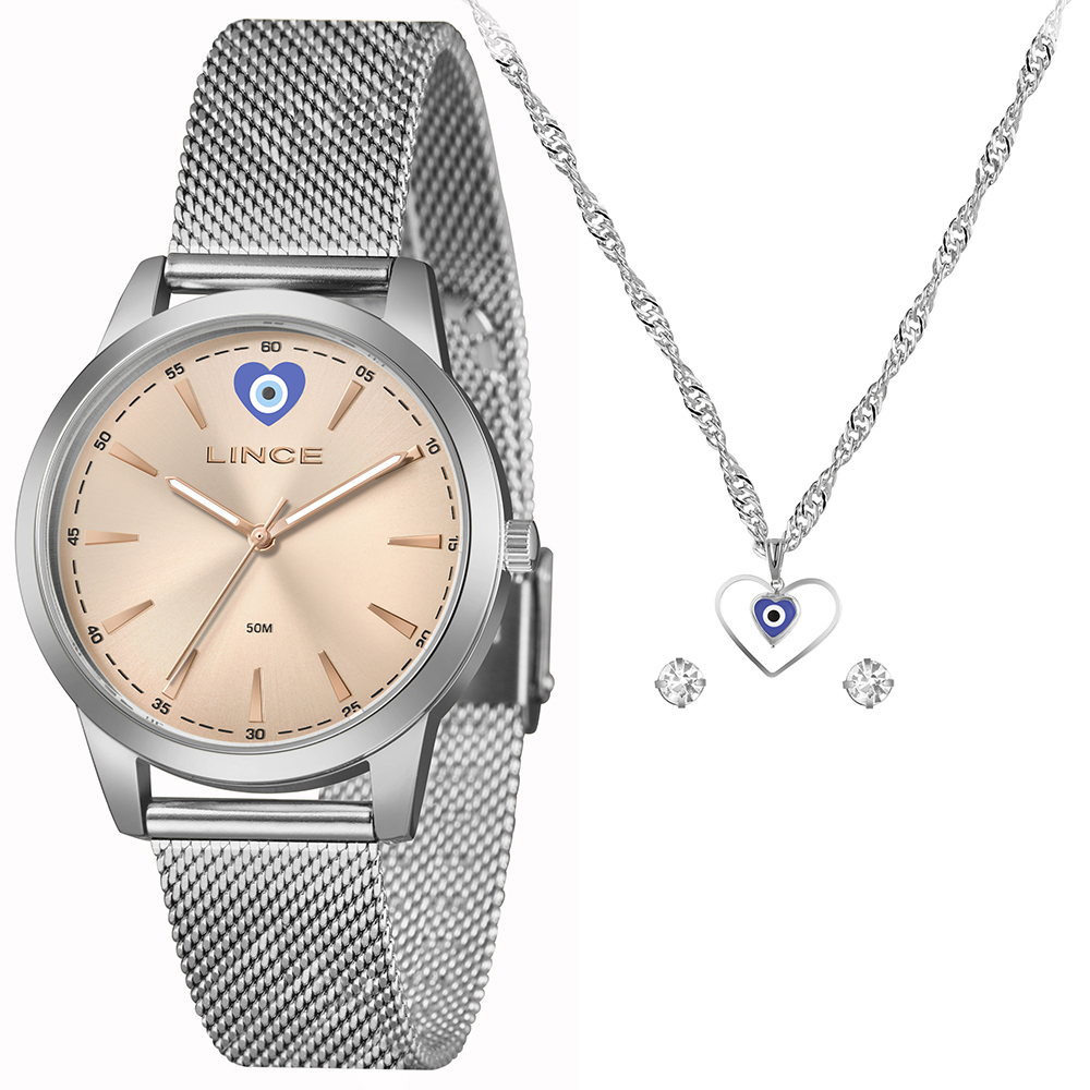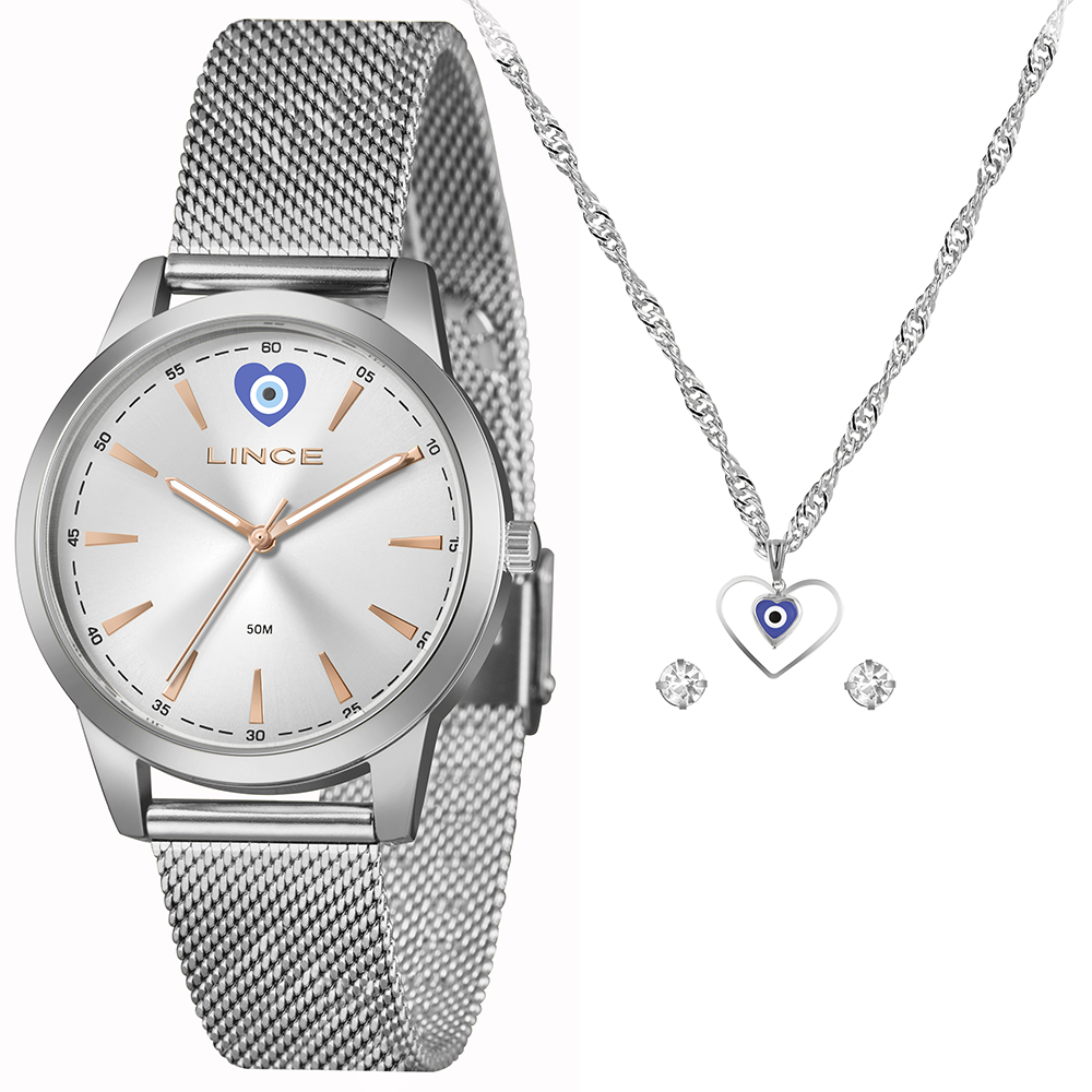 Características: com caixa em aço e pulseira tipo mesh em aço